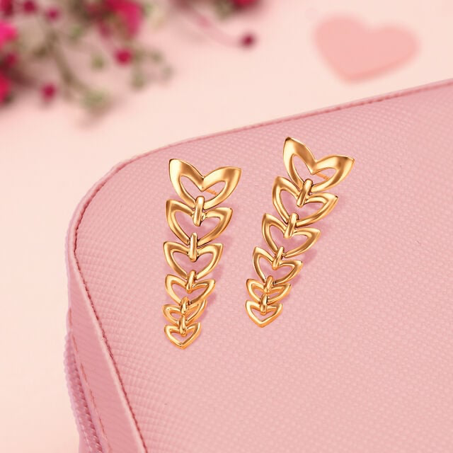 Want to convey how your love cascades through each day in resonance with the state of your smitten heart? Here’s to an ultra-romantic pick of everyday gold earrings! The 14 KT Yellow gold heart drop earrings shall be the perfect gift for your wife, symbolising endless love that streams from your heart to hers.